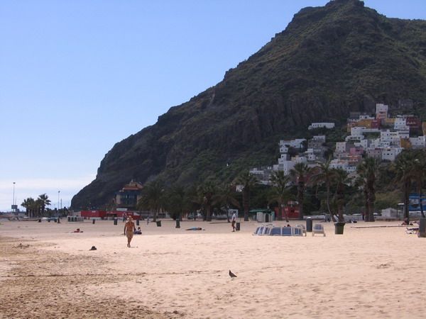 Татуся 0 Опубликовано 13 Марта 2007 Автор Жалоба Поделиться Опубликовано 13 Марта 2007 Спустившись с гор на землю, так сказать, мы решили, что надо все же искупаться, поскольку путь домой лежал через столицу Санта Круз, решили поехать на пляж под названием Лас Терезитас, в 7 км от города. Это единственный пляж на острове с желтым песком, в 1973 году туда завезли из Сахары 4 млн, мешков песка, высадили канарские пальмы, и получился пляж, многим гораздо более привычный... Океанские волны останавливают волнорезы, место довольно популярное, особенно у местных, т.к живя в Лас Америкасе туда ездить конечно не будешь, почти 90 км, а вот по дороге откуда-нибудь, заехать вполне можно. Что мы и сделали. А потом поехали уже в нашу сторону. Недалеко от нас есть поселочек Los Abrigos, именно там знатоки советует кушать морепродукты. Советовали одноименнный ресторан. Но как обычно с нами бывает, мы перепутали двери, и попали в соседний, посидели очень мило и по-домашнему. Жареная дорада\насколько помню у нас она стоит дорого, в их маркетах около6 6,5 евро\, была вкусная и нежная, кальмыры мягкие и конечно одно из национальных блюд папас арругадас, т.е мелкая канарская картошка, сваренная в мундире в морской воде, и покрытая кристаликами соли. Ее едят обычно с разными соусами. Ванч тоже оценил, надо как-нибудь изобразить подобное дома. А тут уж и темно стало, и поехали мы в отель. Так и закончился еще один день. Ссылка на сообщение Поделиться на других сайтах