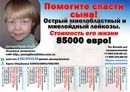 танечка333 0 Опубликовано 7 Сентября 2011 Жалоба Поделиться Опубликовано 7 Сентября 2011 (изменено) Наш малыш родился крепким и крупным карапузом 4000 кг и 53 рост. Рос Вадим большим и здоровым и ничего его ничего не беспокоило кроме аллергии. В свои 5 лет Вадимка очень смышленый и умный мальчик. С большим удовольствием он ходил на занятия по танцам, фортепьяно, рисования, а самое любимое было занятие информатика. В 5 лет мы перенесли 2 отита которые, пришлось лечить с помощью прокола барабанной перепонки. Во и в этот раз 30 апреля 2011 года у Вадимки заболело ушко. Мы обратились в больницу где нас осмотрели, выписали лекарство и сказали после праздников обратиться ко врачу в поликлинике. Первые майские праздники мы делали процедуры которые нам прописали но температура сбивалась лишь не на долго. 03 мая 2011 года мы обратились за помощью к врачу нашей поликлинике которая, осмотрев нас приняла решение о госпитализации. Нас привезли в Морозовскую больницу в ЛОР отделение. После осмотра был поставлен диагноз Левосторонний отит с подозрением на Мастоидит. Был поставлен вопрос об операции Мастоидита. Перед назначением операции были взяты все анализы и вот тут первая «ласточка» лаборант пишет показать результаты Гематологу. Посмотрели результаты и решили провести повторный анализ. Результат прежний. Взяли третий контрольный раз анализ и он, к сожалению нас не обрадовал. Пришел врач в палату и говорит:«У вашего сына подозрение на Лейкоз, необходимо сделать пункцию костного мозга чтобы убедиться точнее.» 05 мая 2011 года нам сделали пункцию и вот он СТРАШНЫЙ диагноз: Острый БИФЕНОТИПИЧЕСКИЙ Лейкоз. После такого жизнь надломилась и единственное о чем хотелось думать: «За что?», «Почему?», «Как спасти своего малыша?» ведь он такой еще маленький и так тяжело на него смотреть и улыбаться ему когда хочется кричать на взрыд. А когда малыш вдруг поймает на маме печальное лицо он подходит к ней крепко обнимает ее и говорит: «Мамочка почему ты такая печальная?? У нас все будет хорошо» Самое страшное, что детей с таким видом лейкоз в России не более 10 человек в год. И опыта естественно очень мало. Сейчас нами получен счет из Клиники Мюнстера Германия на 85 000 Евро. Есть добрые люди и друзья, которые стараются нам помочь и поддержать нас. Но все равно самим нам такой суммы не собрать. Поэтому мы просим Вас о помощи. Возможно именно ваш небольшой вклад спасет жизнь нашему Вадимке. Татьяна и Даниил Демидовы КОНТАКТНЫЕ ТЕЛЕФОНЫ: 8-962-974-03-99 Даниил Демидов ---------------------------------------- Реквизиты для оказания помощи: Почта России 117303, Москва, Керченская ул., д.5, кв.68 Демидов Даниил Викторович Сбербанк: ОАО Сбербанк России (отд №9038/01130 ) ИНН 7707083893 КПП 775001001 КОР СЧЕТ 30101810400000000225 В ОПЕРУ Московского ГТУ Банка России БИК 044525225 РАСЧЕТНЫЙ СЧЕТ 408 178 104 381 149 049 09 Получатель платежа: Демидов Даниил Викторович Если оплачиваете через платежные терминал некоторые запрашивают дату и место рождения 07 апреля 1980 город Москва Карта Сбербанка 639002389017681990 Альфа-банк ОАО «Альфа-Банк», г. Москва БИК 044525593 К/с 30101810200000000593 N счета получателя 40817810404010114472 Получатель: Демидов Даниил Викторович Телефоны Билайн для пожертвований +7-962-974-03-99, +7-965-342-89-13, +7-965-342-88-43 Вебмани R318504621089 Рублевый E329371760733 Евро B978539237964 Беларусский рубль U192495622955 Гривна Z501197933056 Доллар США ссылки на страницы Вадима : http://vadimkahelp.ru/ http://pomogitevadimke.ucoz.ru http://vkontakte.ru/club2